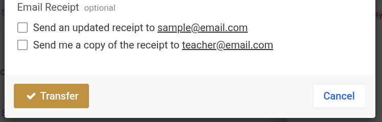 STEP 5: Confirm the Final Transfer Destination and choose whether you want to send an updated email receipt to the attendee. You may also send yourself a copy of the updated confirmation receipt email, if desired.