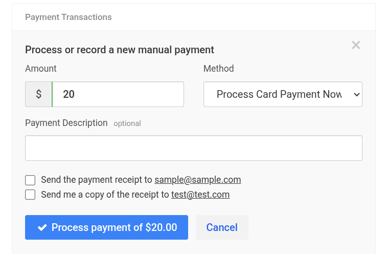 - You have the option to check the box "Send the payment receipt to..." so that your customer is notified of the transaction and has a receipt for their records.